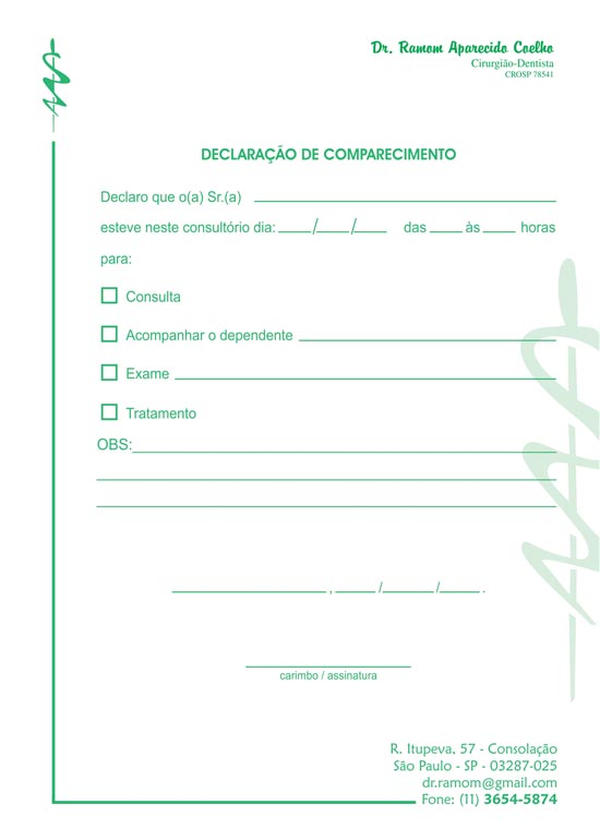 Nossas Declarações para o paciente são confeccionadas em papel Off Set 90g, com impressão 1x0 (1 cor à sua escolha e subtonalidades dessa mesma cor), no formato 15x21cm. Como acabamento, eles são blocados em 100 folhas por bloco.