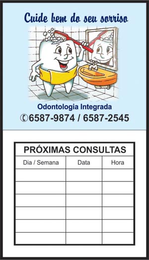 Para finalizar o produto, adicionamos a folhinha para marcação de consultas em Off-Set 170g.