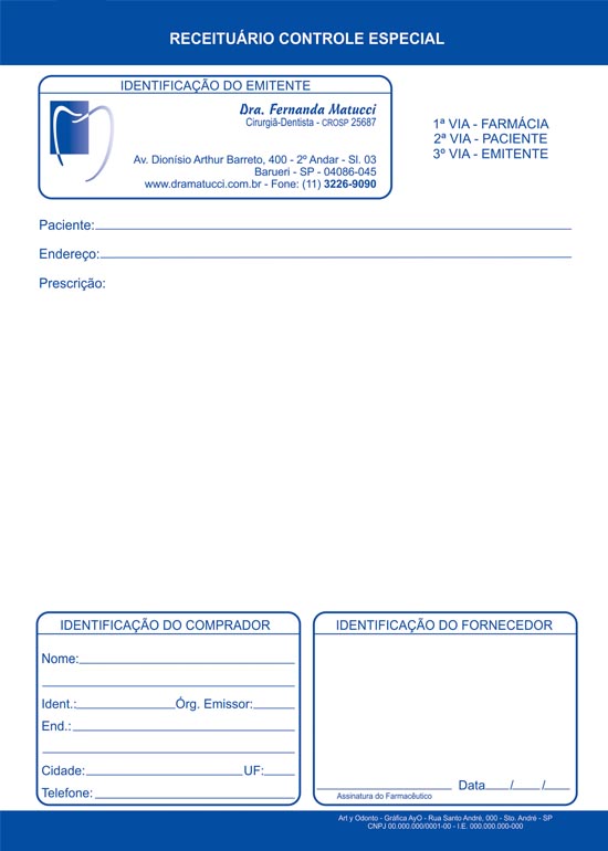 Tags: Receituários para prescrição de Antibióticos, Receituário de Controle Especial, Modelos de Receitário Antibiótico Odontologia.